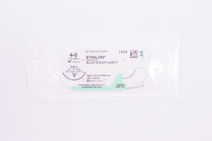 - Ethicon 1629 4-0 ETHILON, FS-1, 24mm 3/8c Reverse Cutting, 18inch (x)