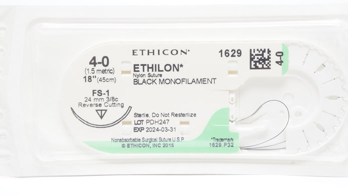 - Ethicon 1629 4-0 ETHILON Nylon Stre FS-1 24mm 3/8c Reverse Cutting 18inch (x)