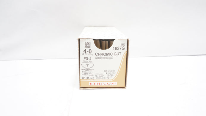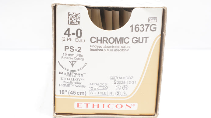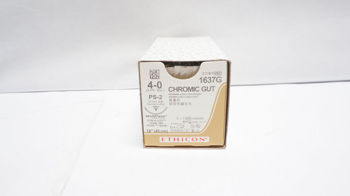 - Ethicon 1637G 4-0 CHROMIC GUT PS-2 19mm 3/8c Reverse Cutting 18inch - Box of 12