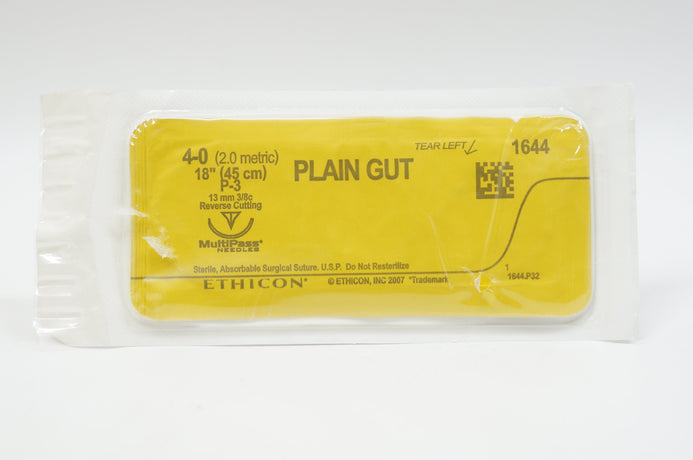 - Ethicon 1644 4-0 PLAIN GUT, P-3, 13mm 3/8c Reverse Cutting, 18inch (x)