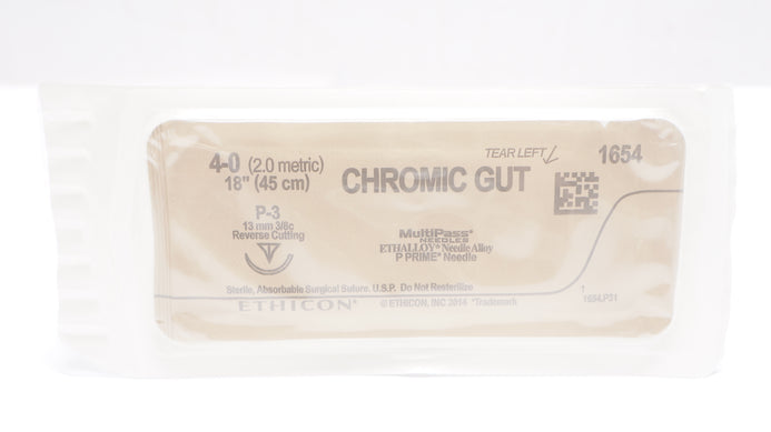 Ethicon 1654 4-0 CHROMIC GUT Surgical Suture P-3 13mm 3/8 Reverse Cutting, 18inch