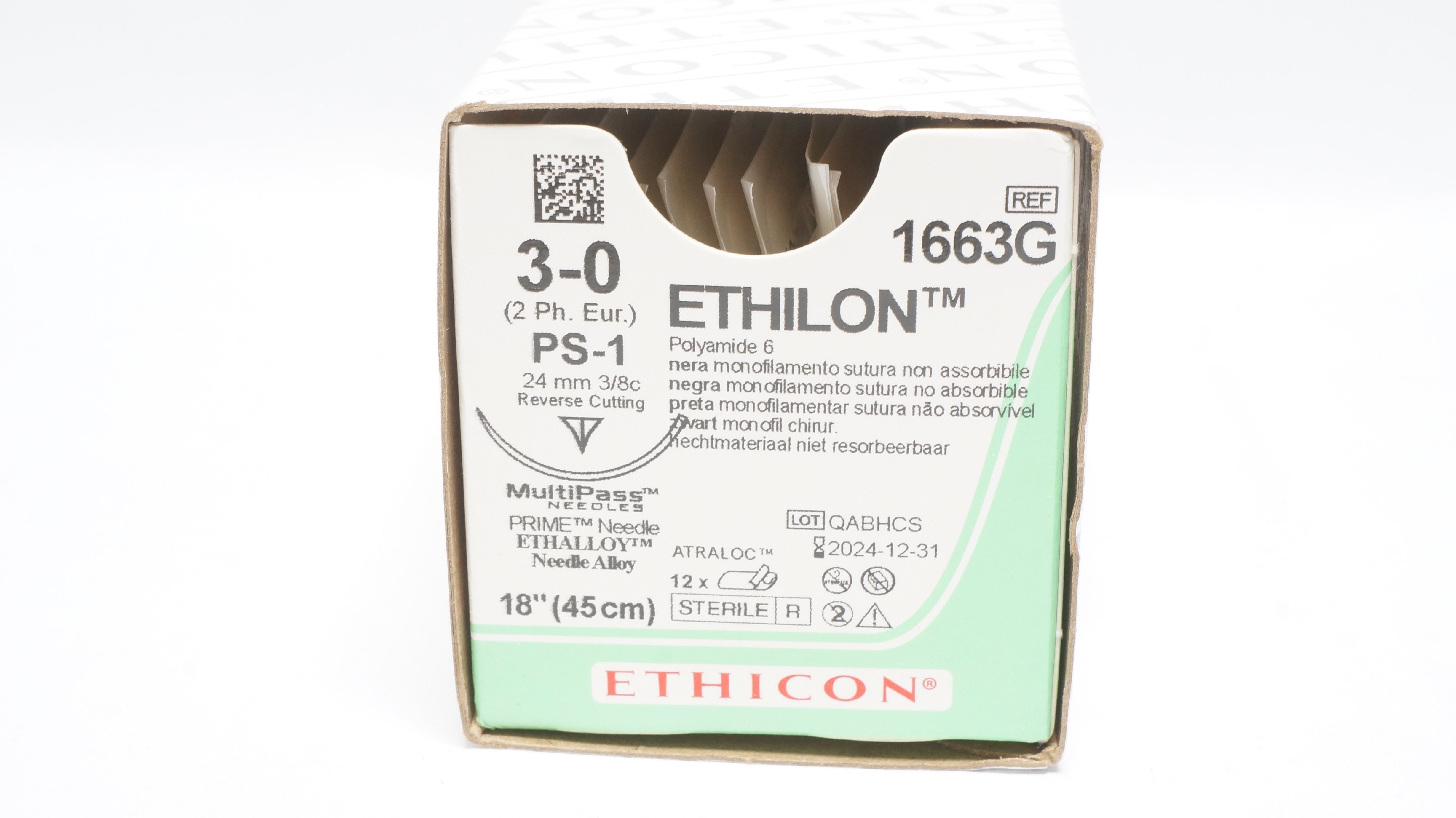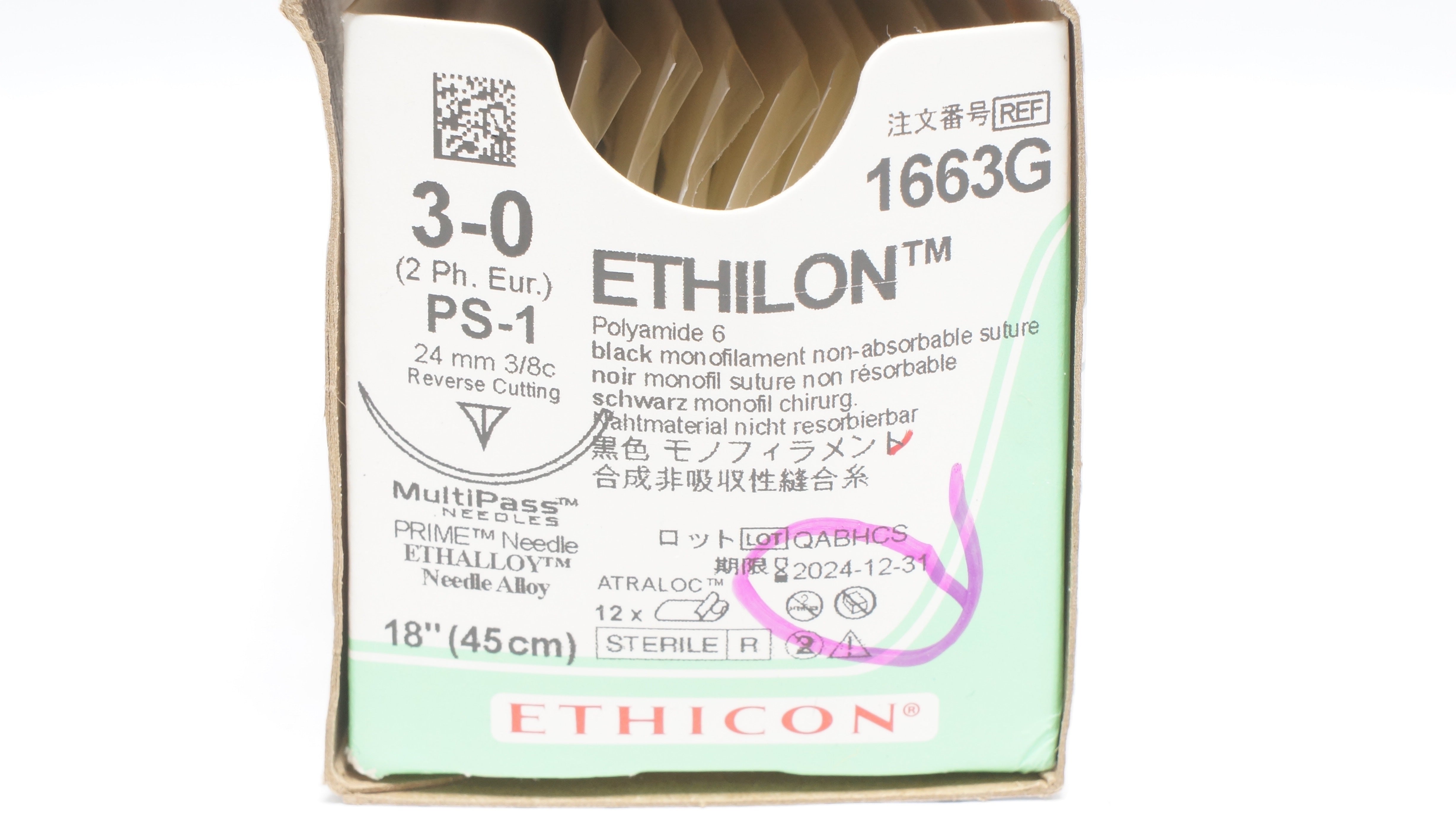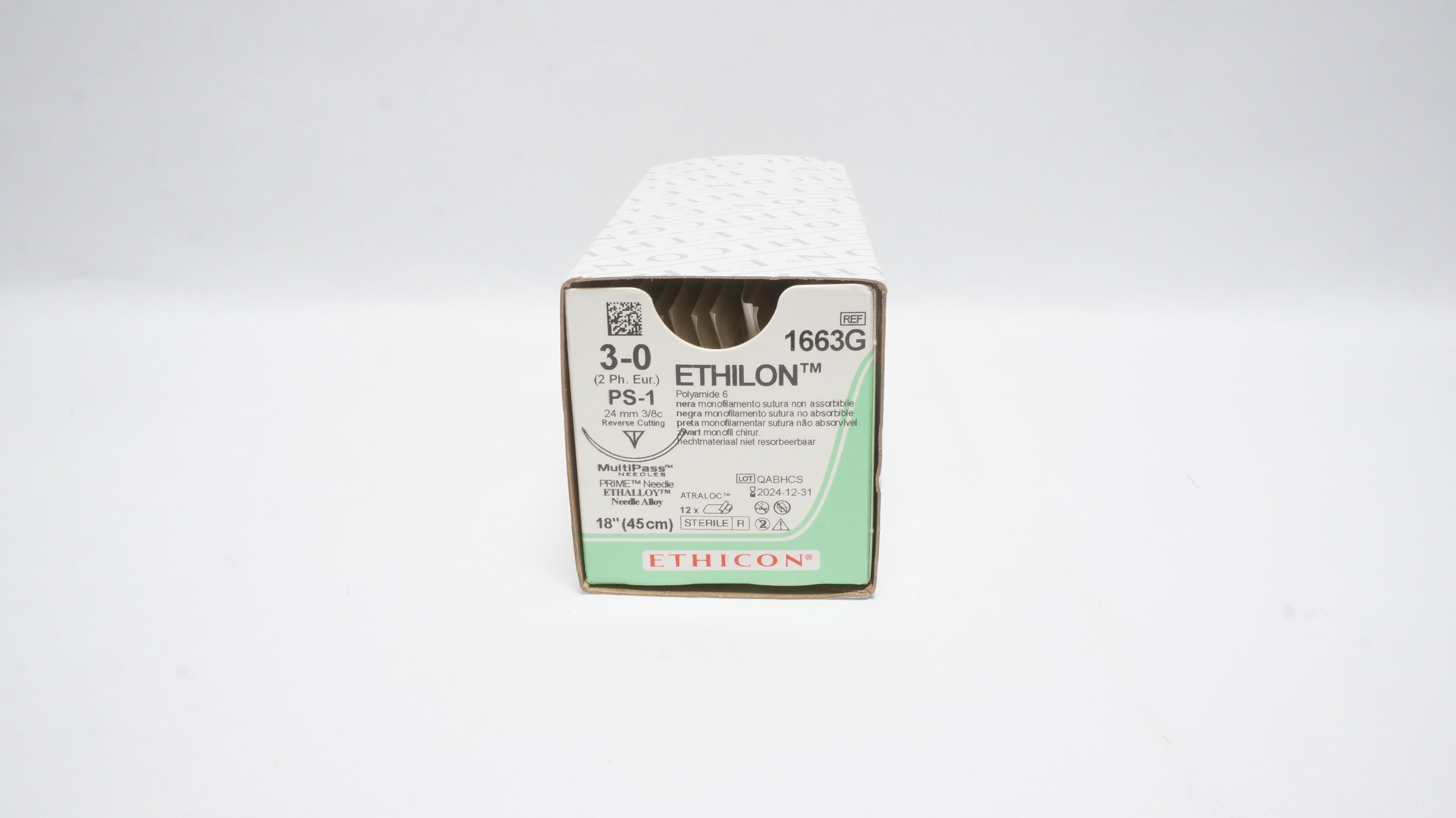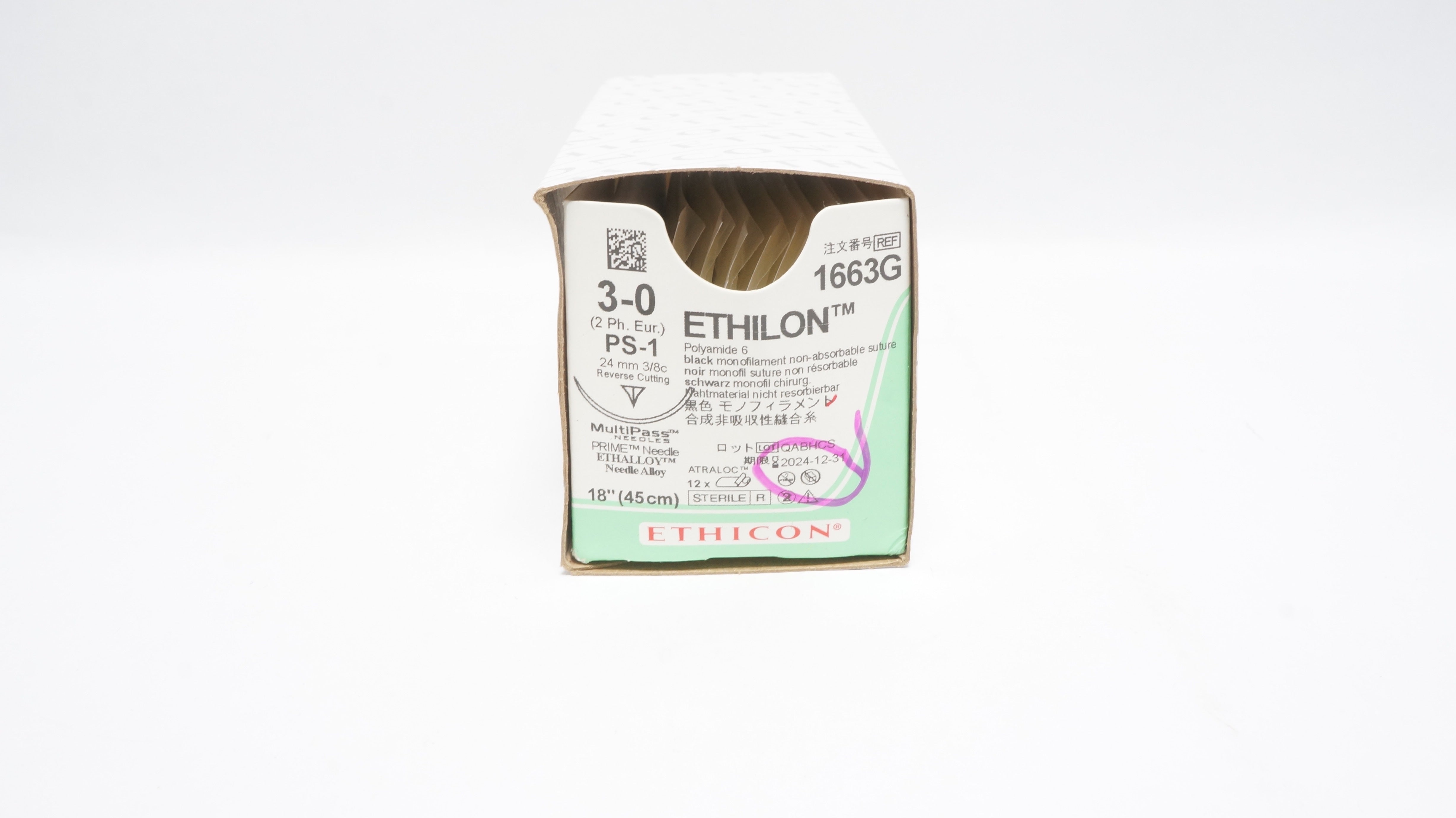 - Ethicon 1663G 3-0 ETHILON BLACK 18inch Nylon Stre. PS-1 24mm Ndle.(x) -Box of 10