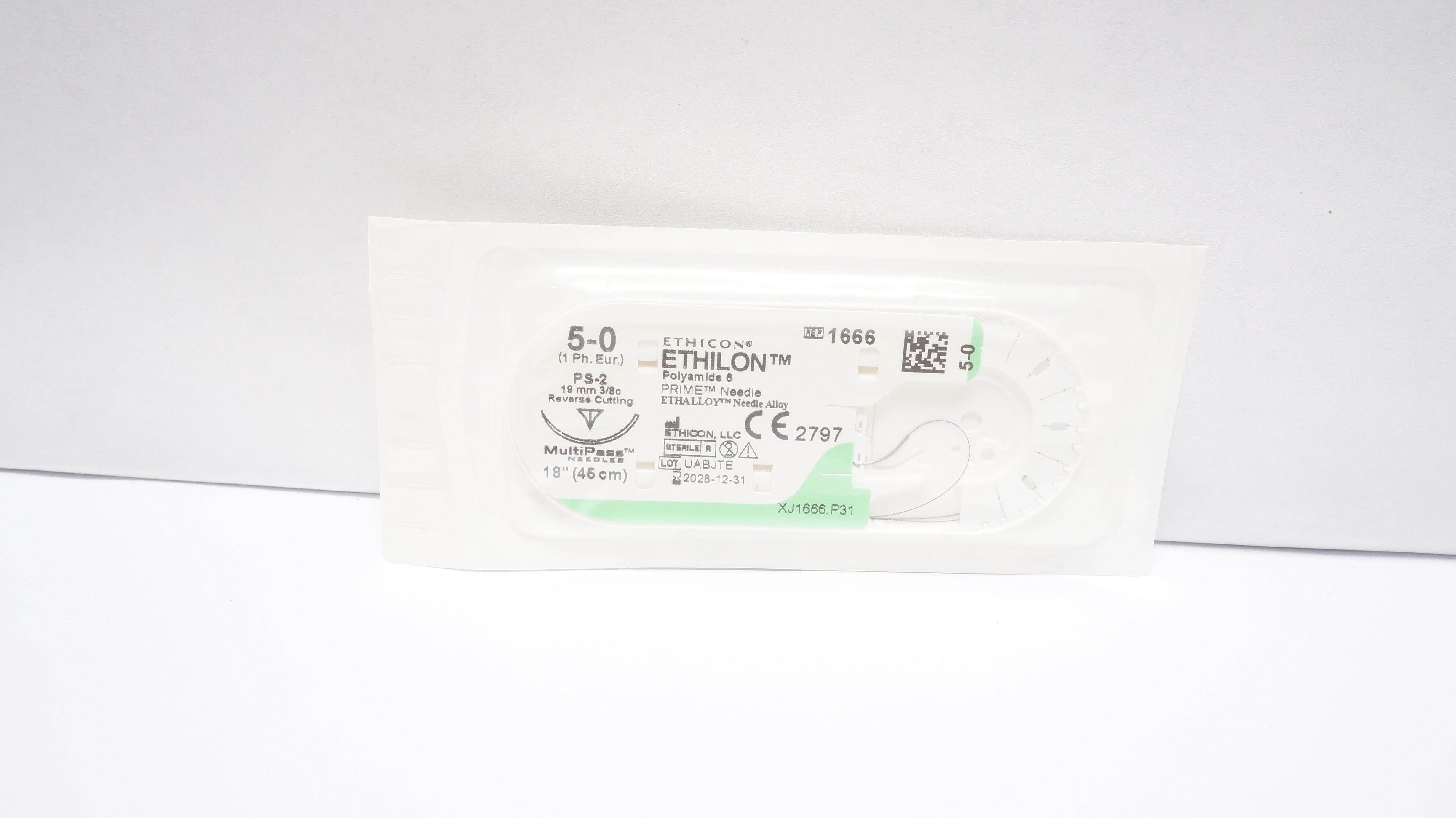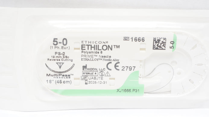 - Ethicon 1666 5-0 ETHILON Stre PS-2 19mm 3/8c Reverse Cutting, 18inch