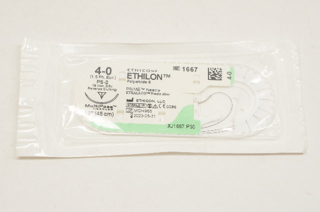 - Ethicon 1667 4-0 ETHILON, PS-2, 19mm 3/8c Reverse Cutting, 18inch