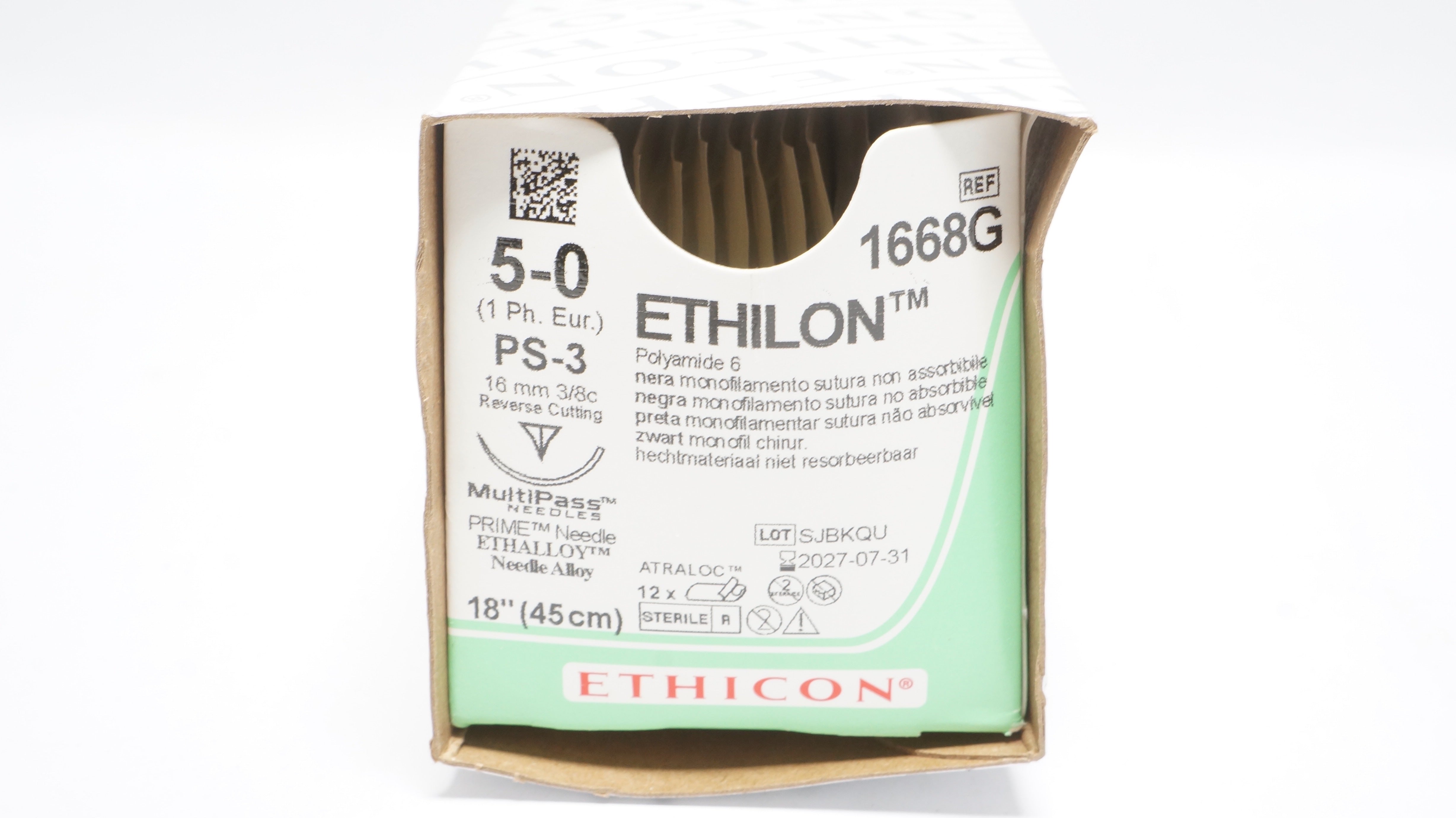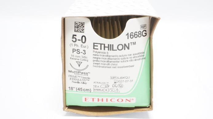 - Ethicon 1668G 5-0 Polyamide 6 PS-3 16mm 3/8c Reverse Cutting 18inch - Box of 12