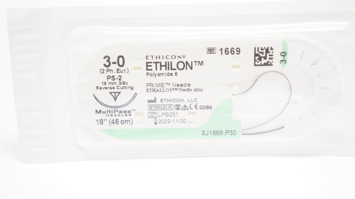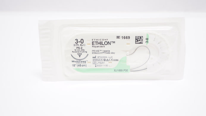 - Ethicon 1669 3-0 ETHILON,PS-2, 19mm 3/8c Reverse Cutting, 18inch (x)