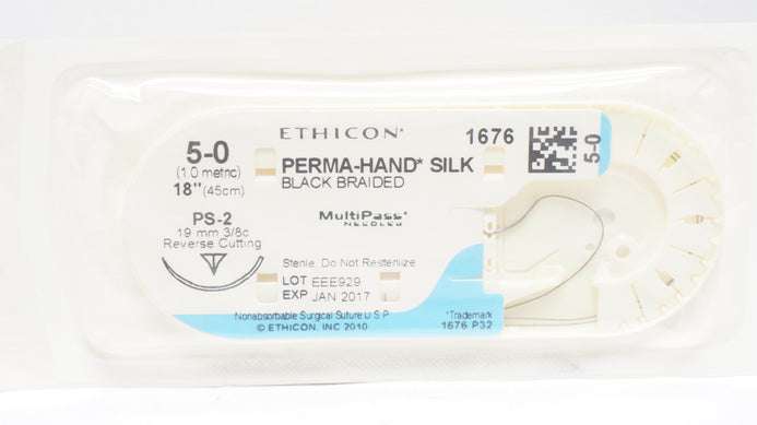 - Ethicon 1676 5-0 Perma-Hand Silk PS-2 19mm 3/8c 18inch (x)