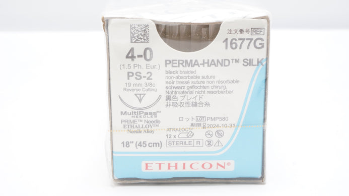 - Ethicon 1677G 4-0 PERMA-HAND Stre PS-2 19mm 3/8c Reverse Cutting 18inch-Box of 12