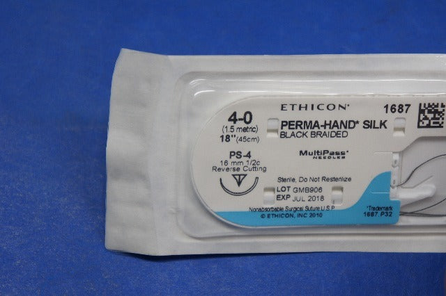 - Ethicon 1687 4-0 Perma-Hand Silk, PS-4, 16mm 1/2c Reverse Cutting