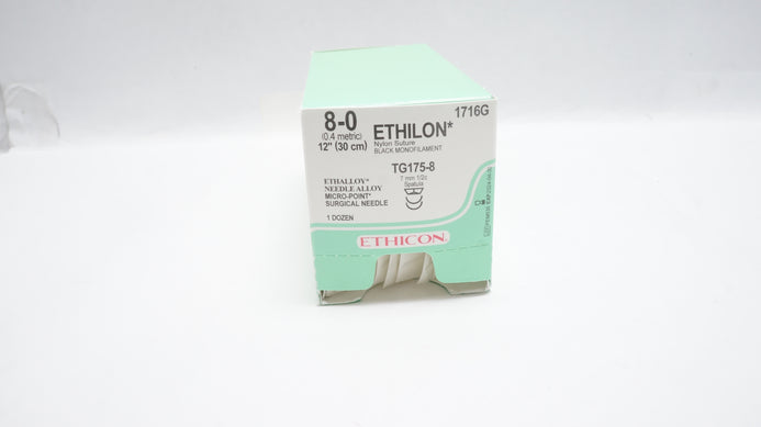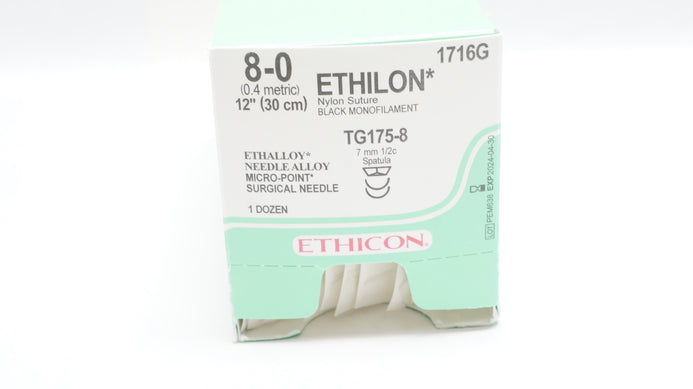 - Ethicon 1716G 8-0 Ethilon Stre TG175-8 7mm 1/2c Spatula, 12inch (x) - Box of 11