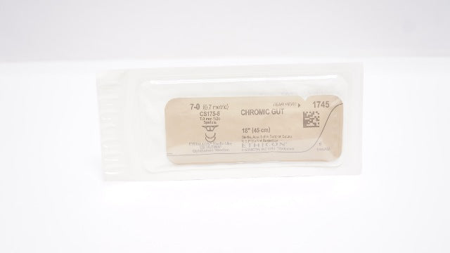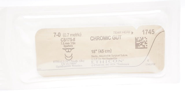 - Ethicon 1745 7-0 Chromic Gut, CS175-8, 7.0mm 1/2c Spatula, 18inch (x)