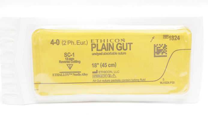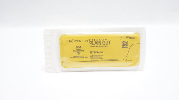 - Ethicon 1824 4-0 Plain Gut Absorbable Stre SC-1 13mm Reverse Cutting 18inch (x)