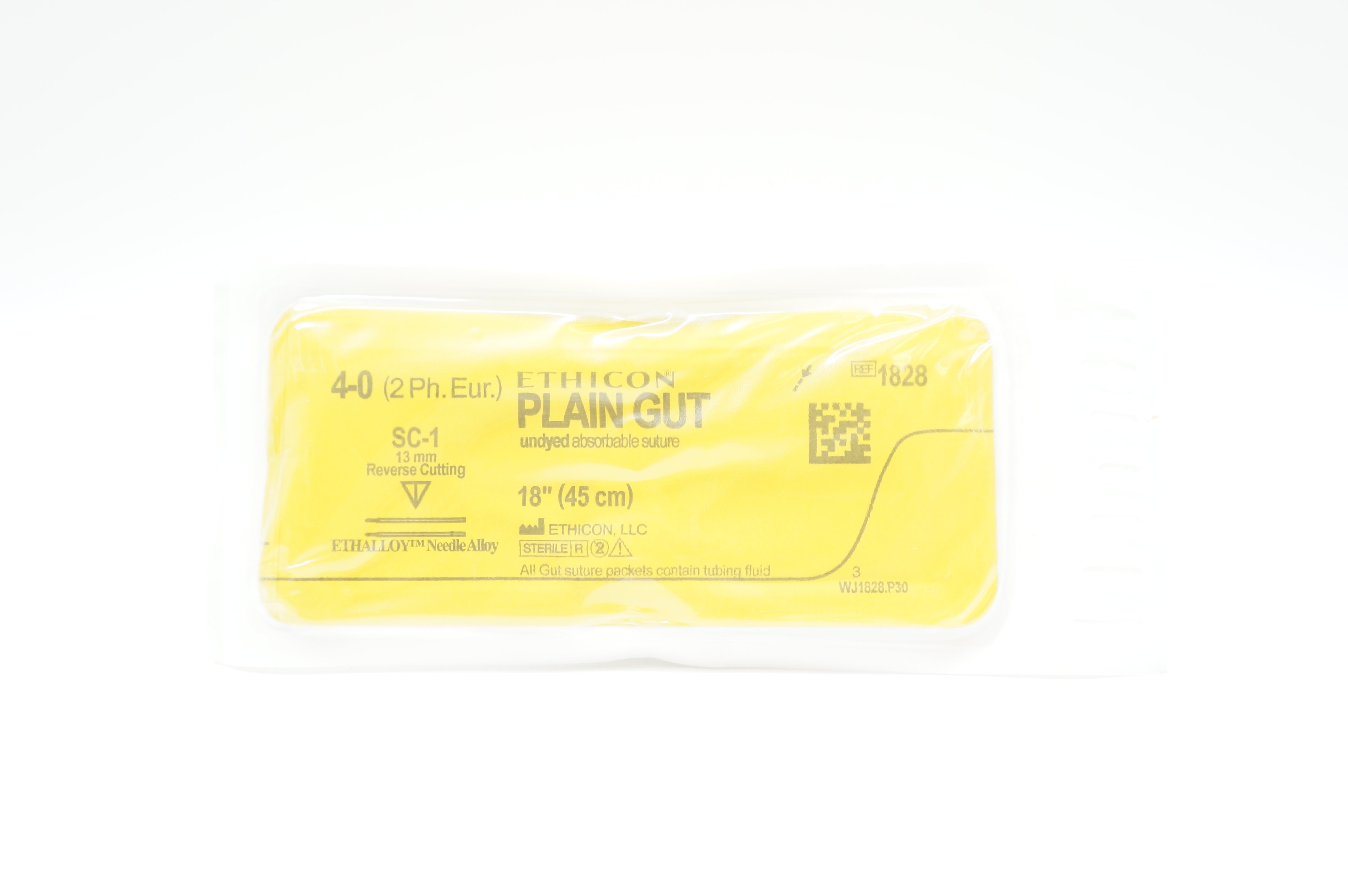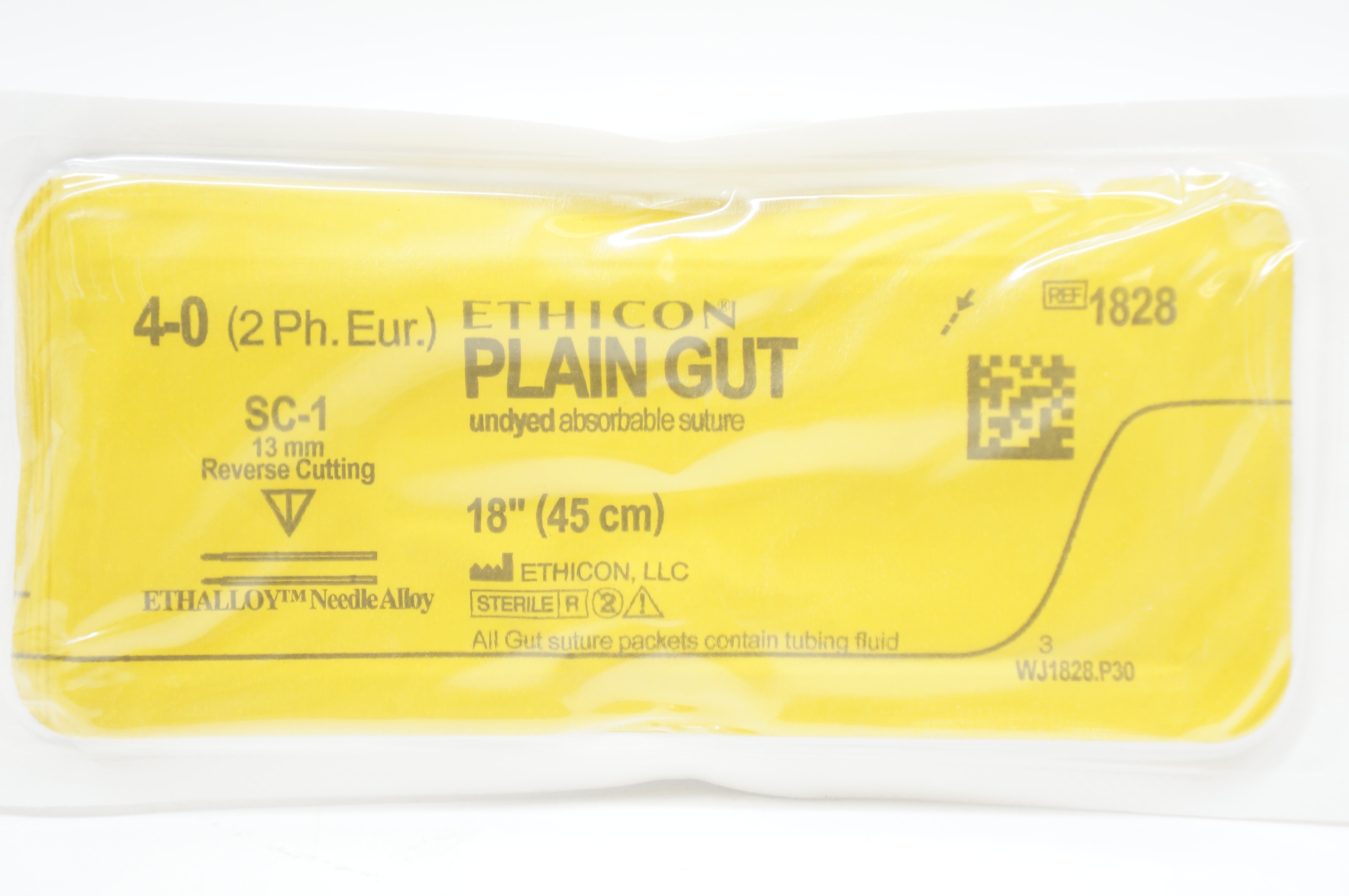 - Ethicon 1828 4-0 PLAIN GUT Undyed Stre SC-1 13mm Reverse Cutting, 18inch