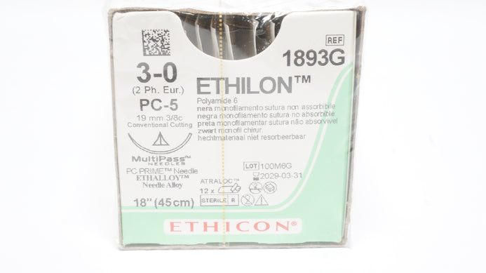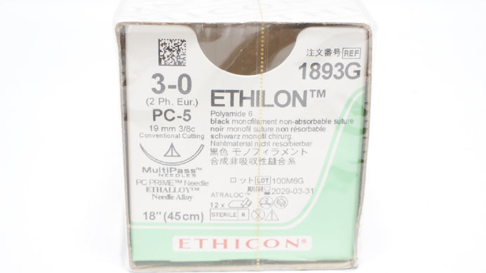 - Ethicon 1893G 3-0 ETHILON BLACK Stre PC-5 19mm 3/8c 18inch - Box of 12