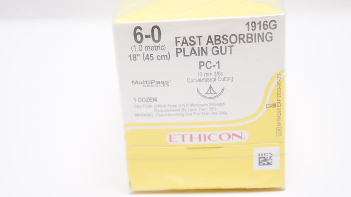 - Ethicon 1916G 6-0 Absorbable Surgical Stre PC-1 13mm 3/8c 18inch (x)- Box of 12