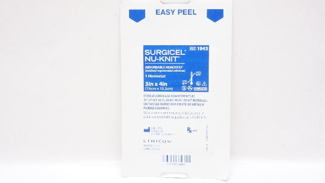 - Ethicon 1943 Surgicel Nu-Knit Absorbable Hemostat 3inch x 4inch