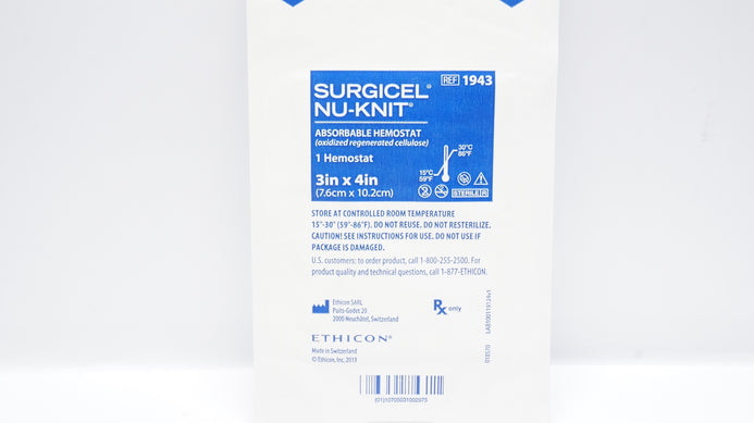 - Ethicon 1943 Surgicel Nu-Knit Absorbable Hemostat 3inch x 4inch (x)