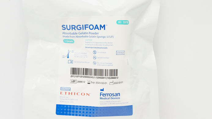 - Ethicon 1978 Ferrosan Surgifoam Absorbable Gelatin Powder 1 Gram (x)