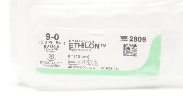 - Ethicon 2809 9-0 Ethilon Nylon Stre BV130-5 3/8c 6.5mm Taper 5inch