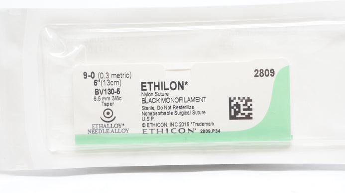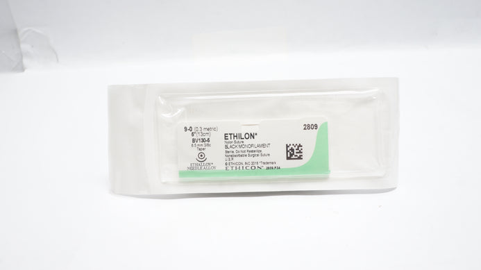 - Ethicon 2809 9-0 Ethilon Nylon Stre BV130-5 6.5mm 3/8c Taper, 5inch (x)