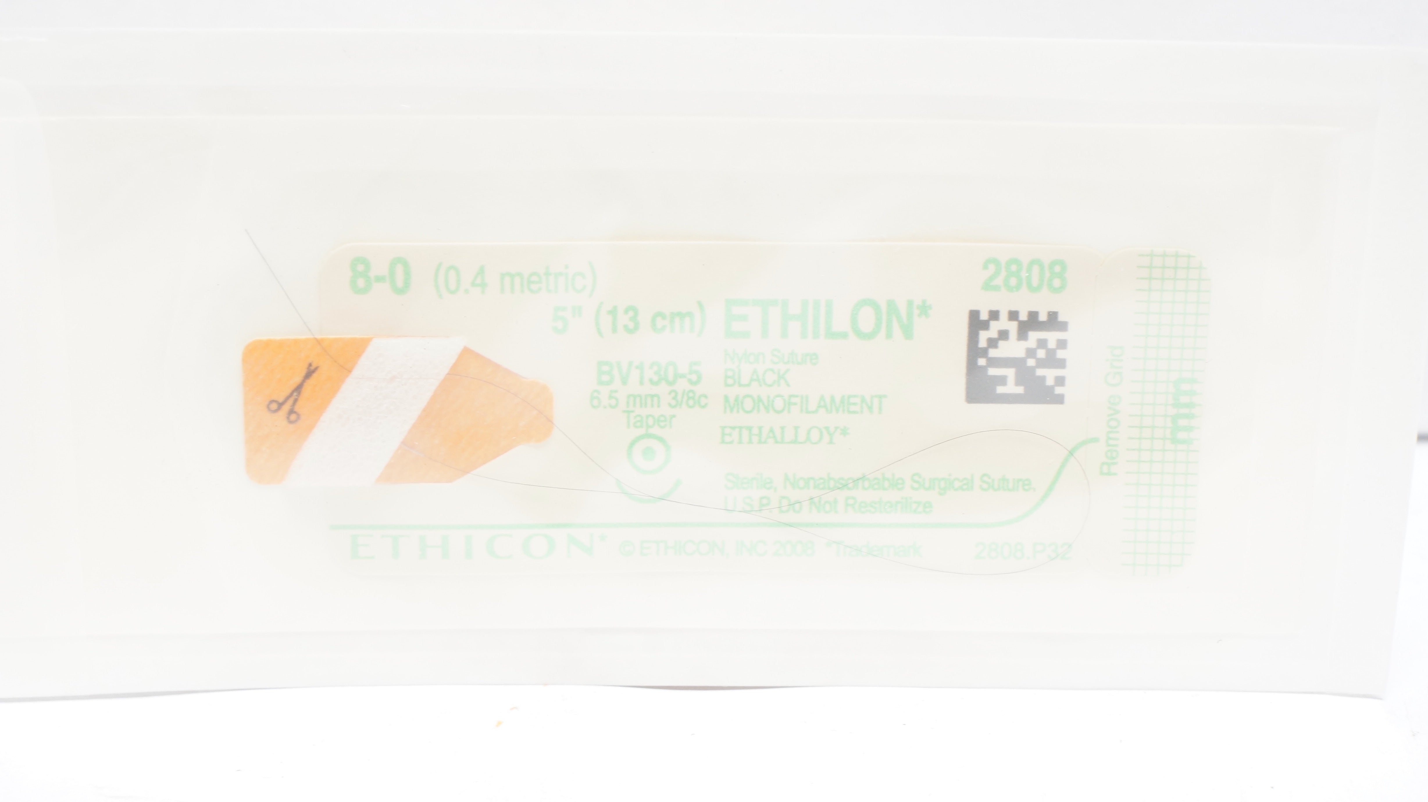 - Ethicon 2809 9-0 Ethilon Nylon Stre BV130-5 6.5mm 3/8c Taper, 5inch (x)