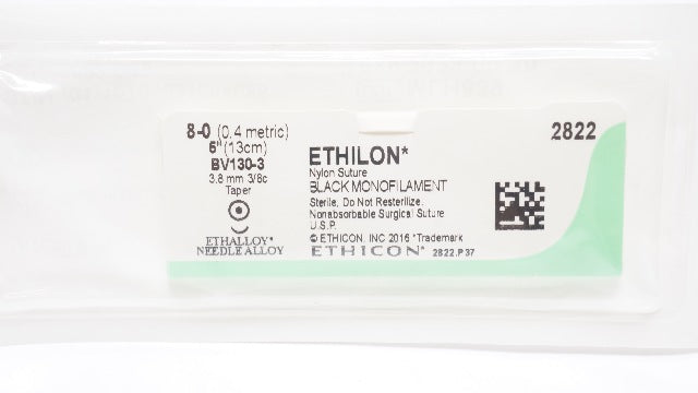 - Ethicon 2822 Ethilon 8-0 Nylon Stre BV130-3 3.8mm 3/8c Taper 5In (x)