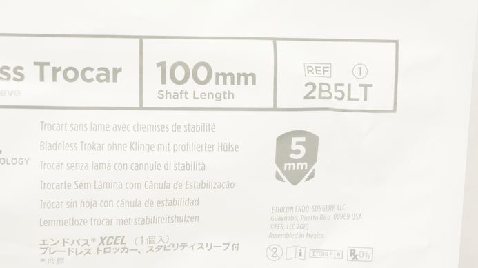 - Ethicon 2B5LT Bladeless Trocar Bladeless Trocar w/Stability Sleeve 5 x 100mm