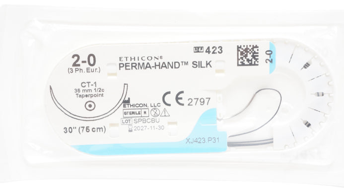 - Ethicon 423 2-0 PERMA-HAND SILK Stre CT-1 36mm 1/2c Taperpoint, 30inch