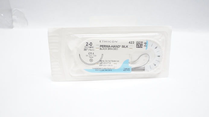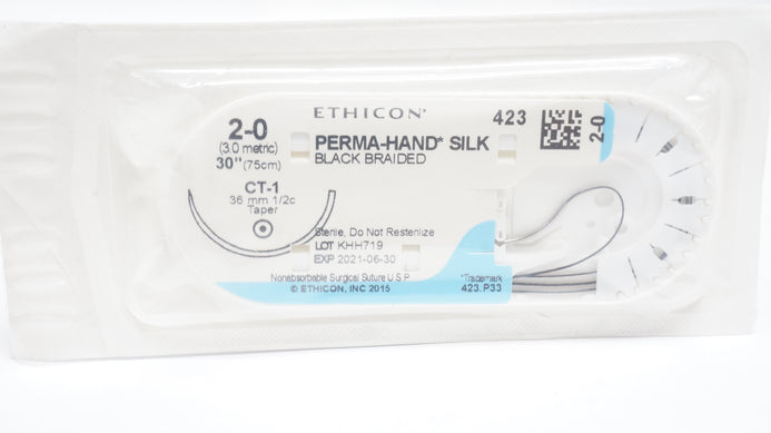 - Ethicon 423 2-0 PERMA-HAND SILK Stre CT-1 36mm 1/2c Taperpoint, 30inch (x)