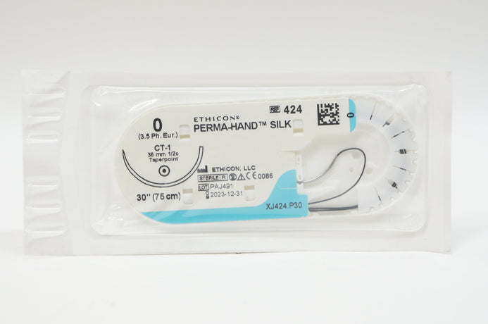 - Ethicon 424 0 PERMA-HAND SILK, CT-1, 36mm 1/2c Taperpoint, 30inch