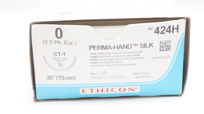 - Ethicon 424H 0 Perma-Hand SILK, CT-1, 36mm 1/2c Taper, 30inch - Box of 36