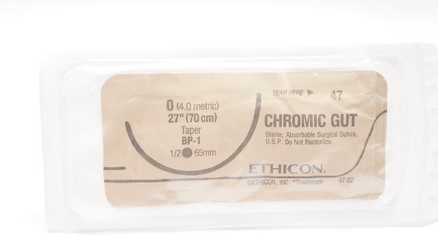 - Ethicon 47 0 Sutupak Chromic Gut, BP-1, 65mm 1/2c Taper, 27inch (x)