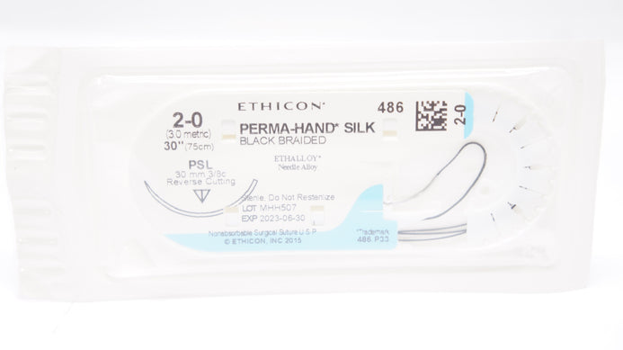 - Ethicon 486 2-0 Perma-Hand Silk PSL 30mm 3/8c Reverse Cutting 30inch (x)