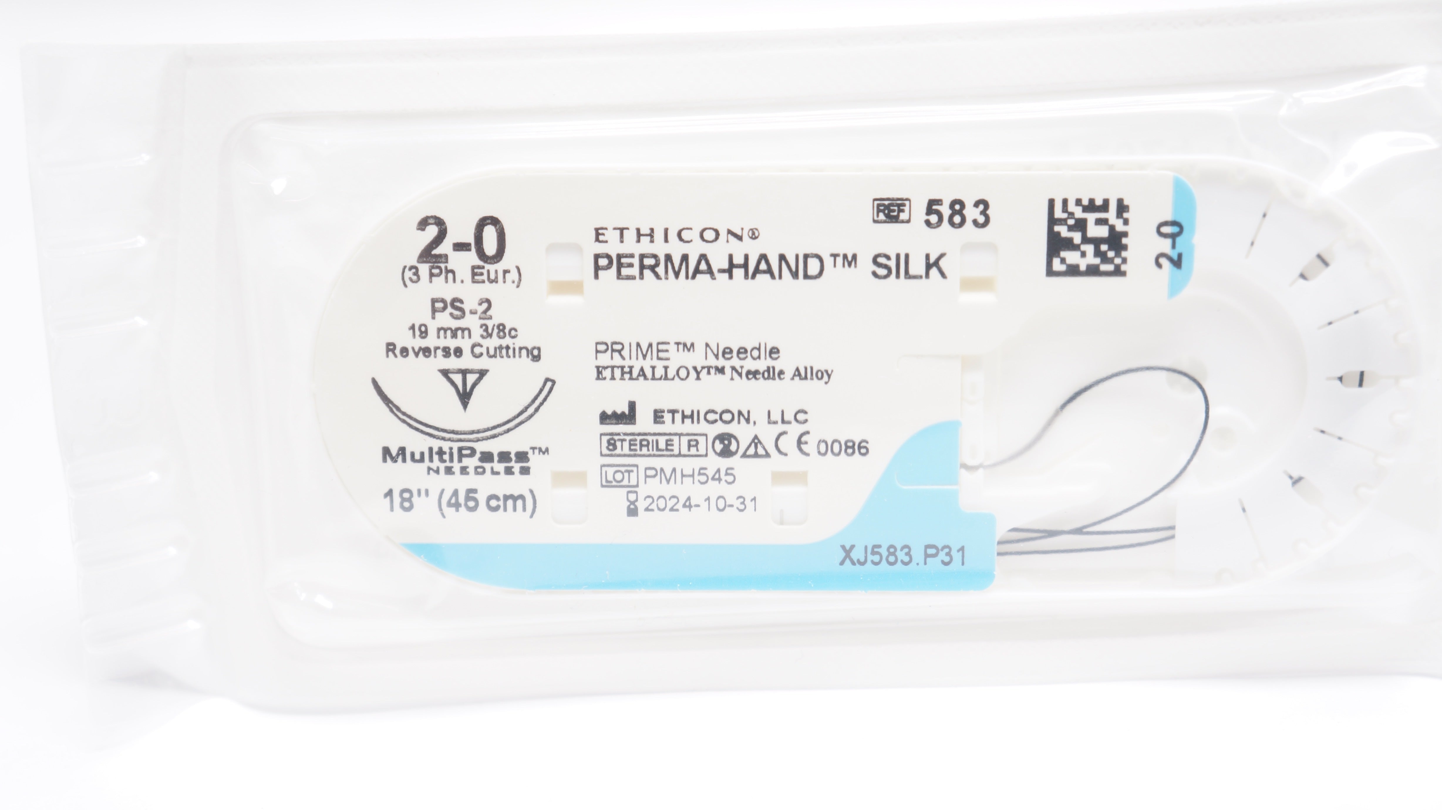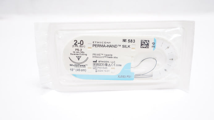 - Ethicon 583 2-0 Perma-Hand Silk Stre PS-2 19mm 3/8c Reverse Cutting 18inch