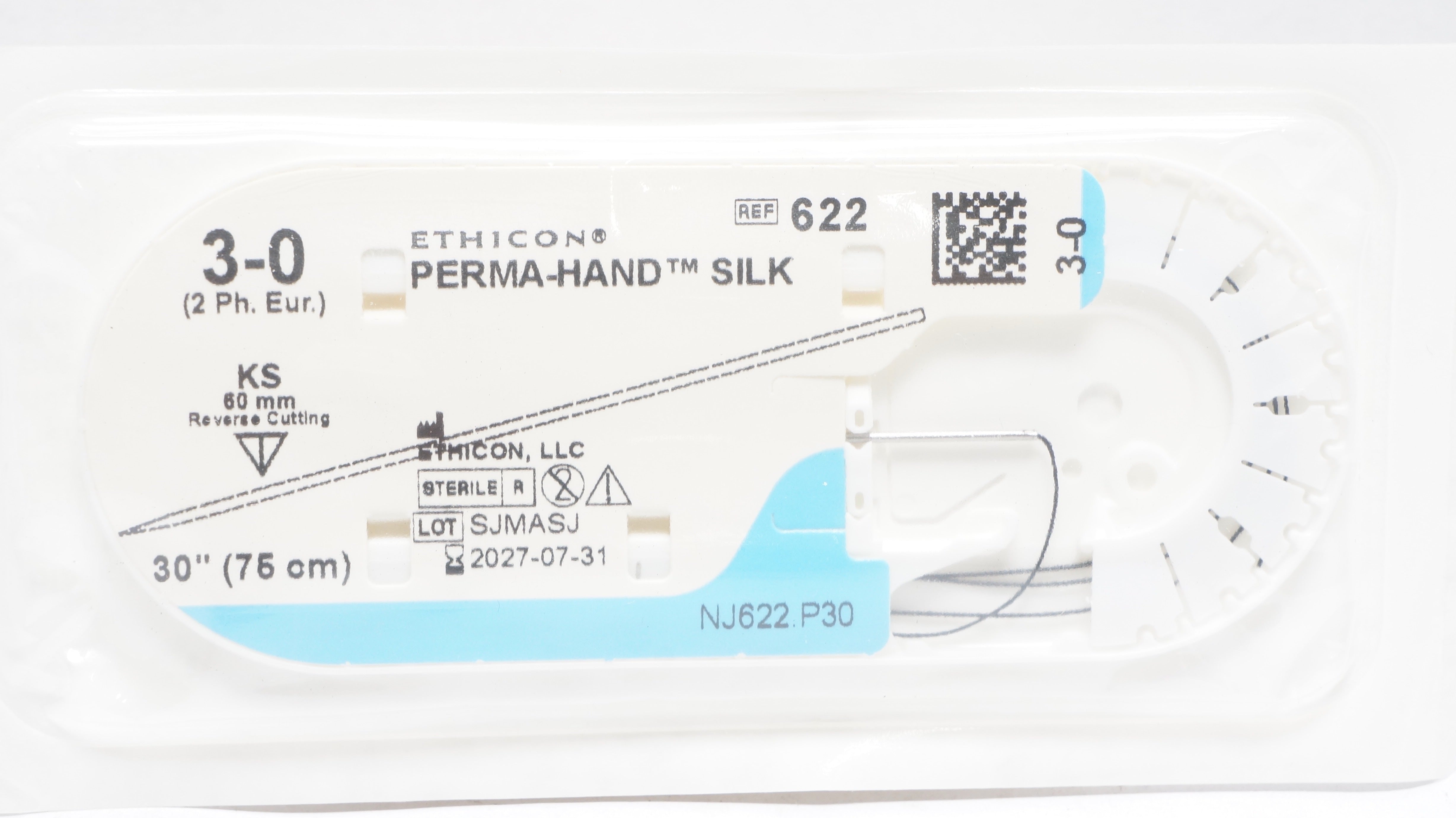 - Ethicon 622 3-0 Perma-Hand Silk Surgical Stre KS 60mm Reverse Cutting, 30inch