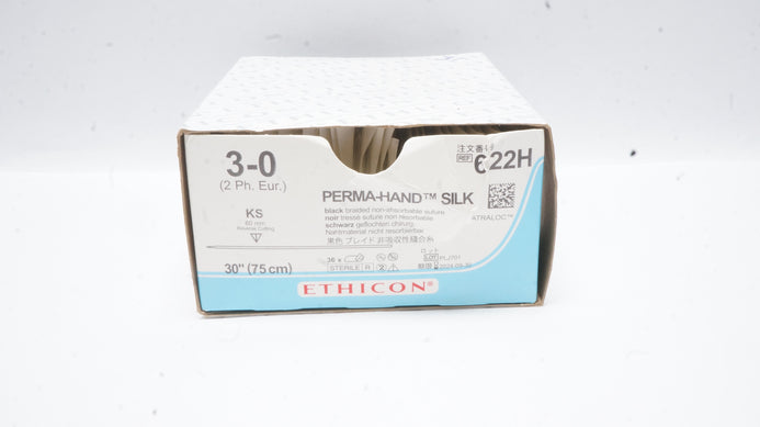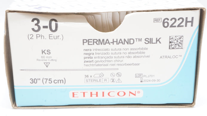 - Ethicon 622H 3-0 Perma-Hand Silk Stre KS 60mm Reverse Cutting 30in(x) -Box of 31