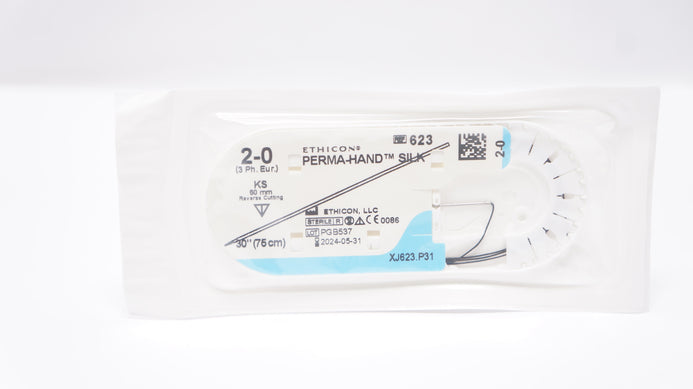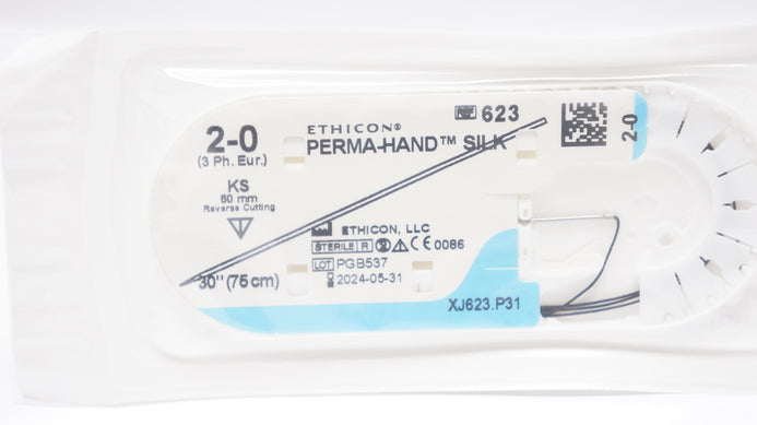 - Ethicon 623 2-0 Perma-Hand Silk Stre KS 60mm Reverse Cutting, 30 inch (x)