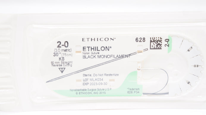 - Ethicon 628 2-0 Ethilon Nylon, KS, 60mm Straight Reverse Cutting, 30inch (x)