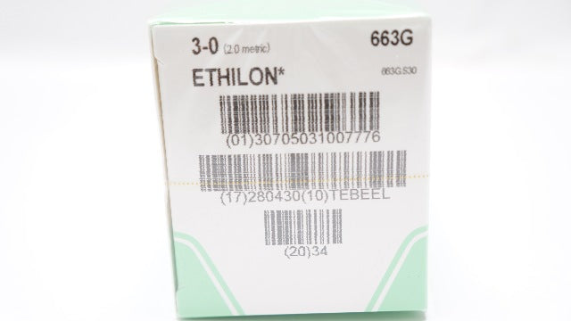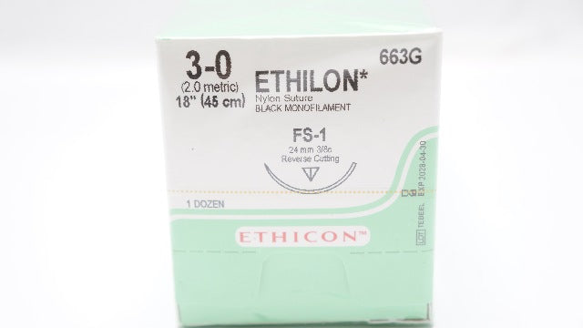 - Ethicon 663G 3-0 Ethilon Nylon Stre FS-1 24mm 3/8c Reverse Cut. 18In - Box of 12