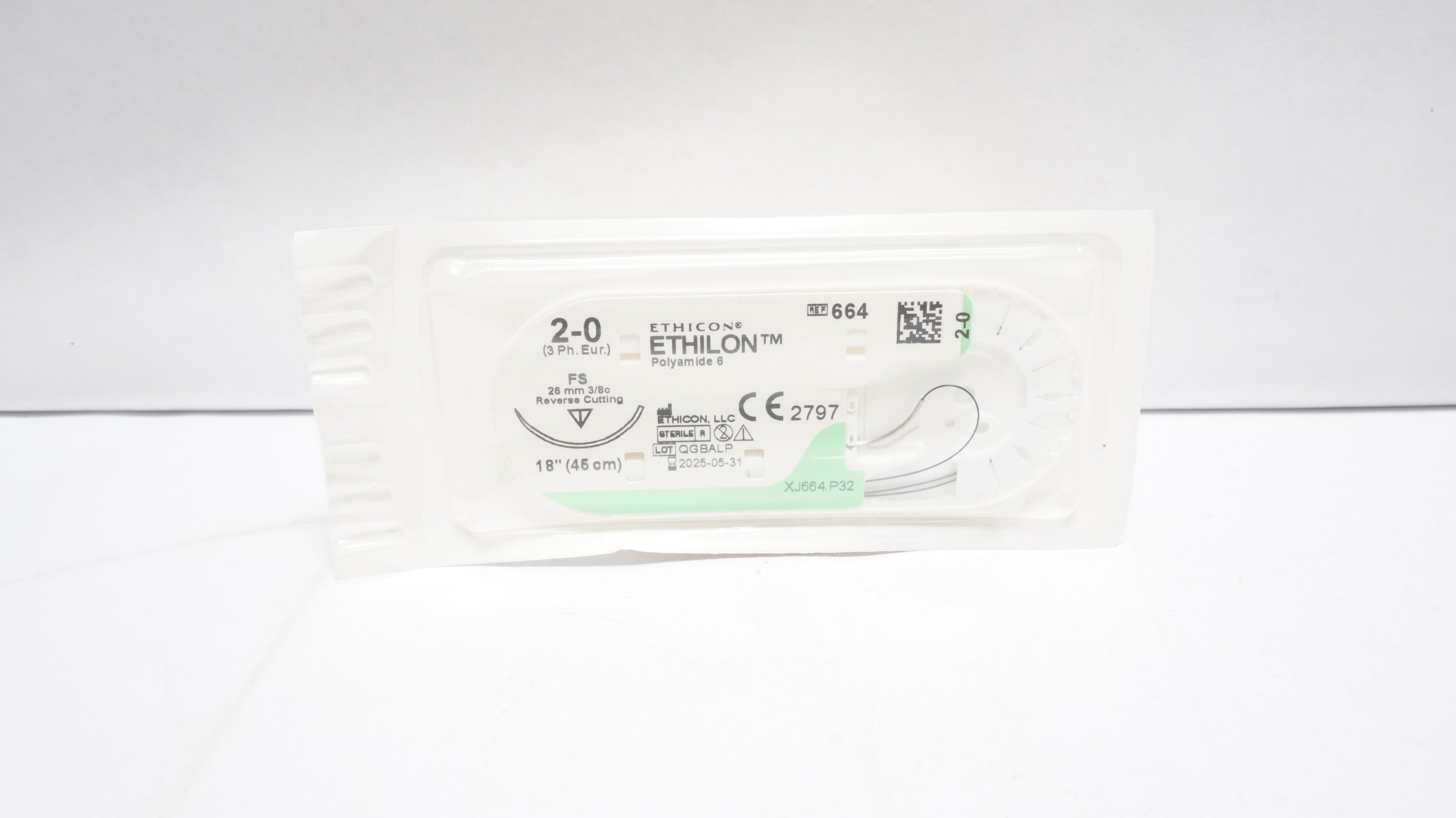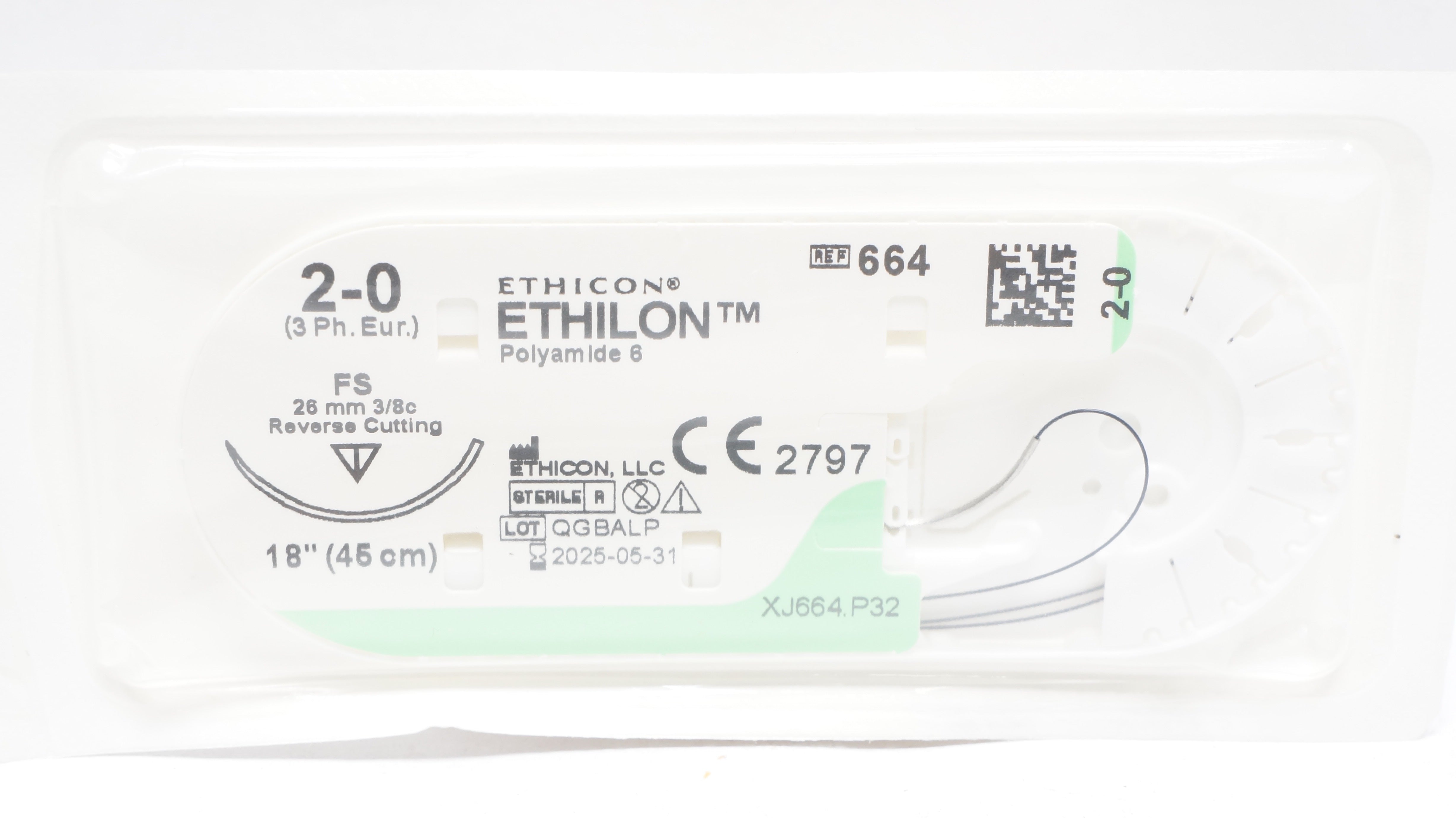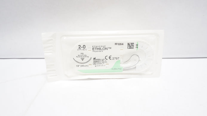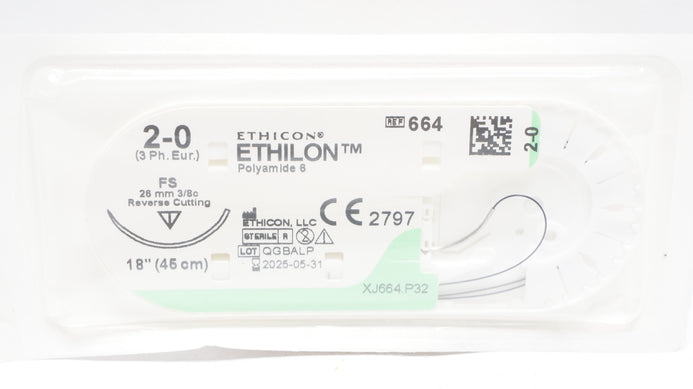 - Ethicon 664 2-0 Ethilon Nylon Stre FS 26mm 3/8c Reverse Cutting 18 inch (x)