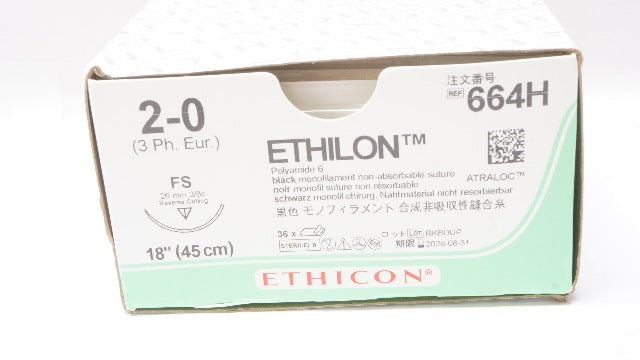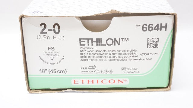 - Ethicon 664H 2-0 ETHILON, FS, 26mm 3/8c Reverse Cutting, 18inch - Box of 35