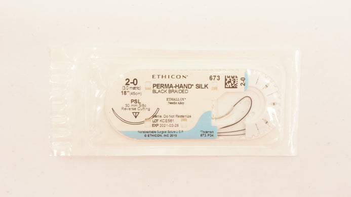 - Ethicon 673 2-0 PERMA-HAND SILK PSL 30mm 3/8c Reverse Cutting 18inch (x)