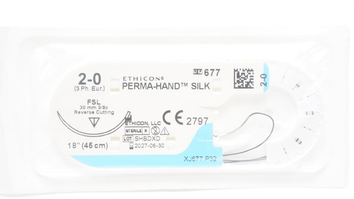 - Ethicon 677 2-0 PERMA-HAND SILK Stre FSL 30mm 3/8c Reverse Cutting, 18inch