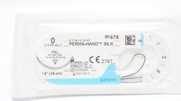 - Ethicon 678 0 PERMA-HAND SILK Stre FSL 30mm 3/8c Reverse Cutting, 18inch