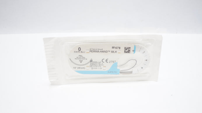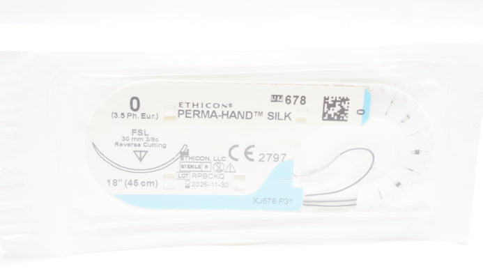 - Ethicon 678 0 PERMA-HAND SILK Stre FSL 30mm 3/8c Reverse Cutting, 18inch