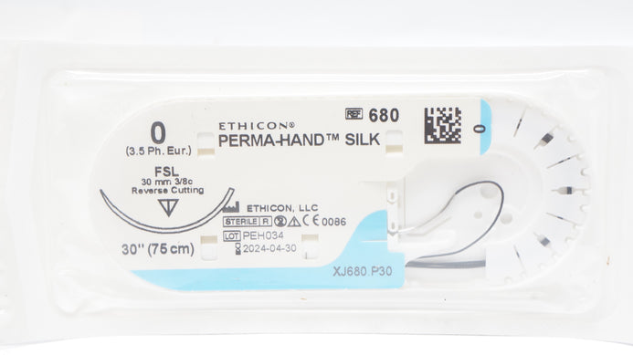 - Ethicon 680 0 Perma-Hand Silk Stre FSL 30mm 3/8c Reverse Cutting, 30inch (x)