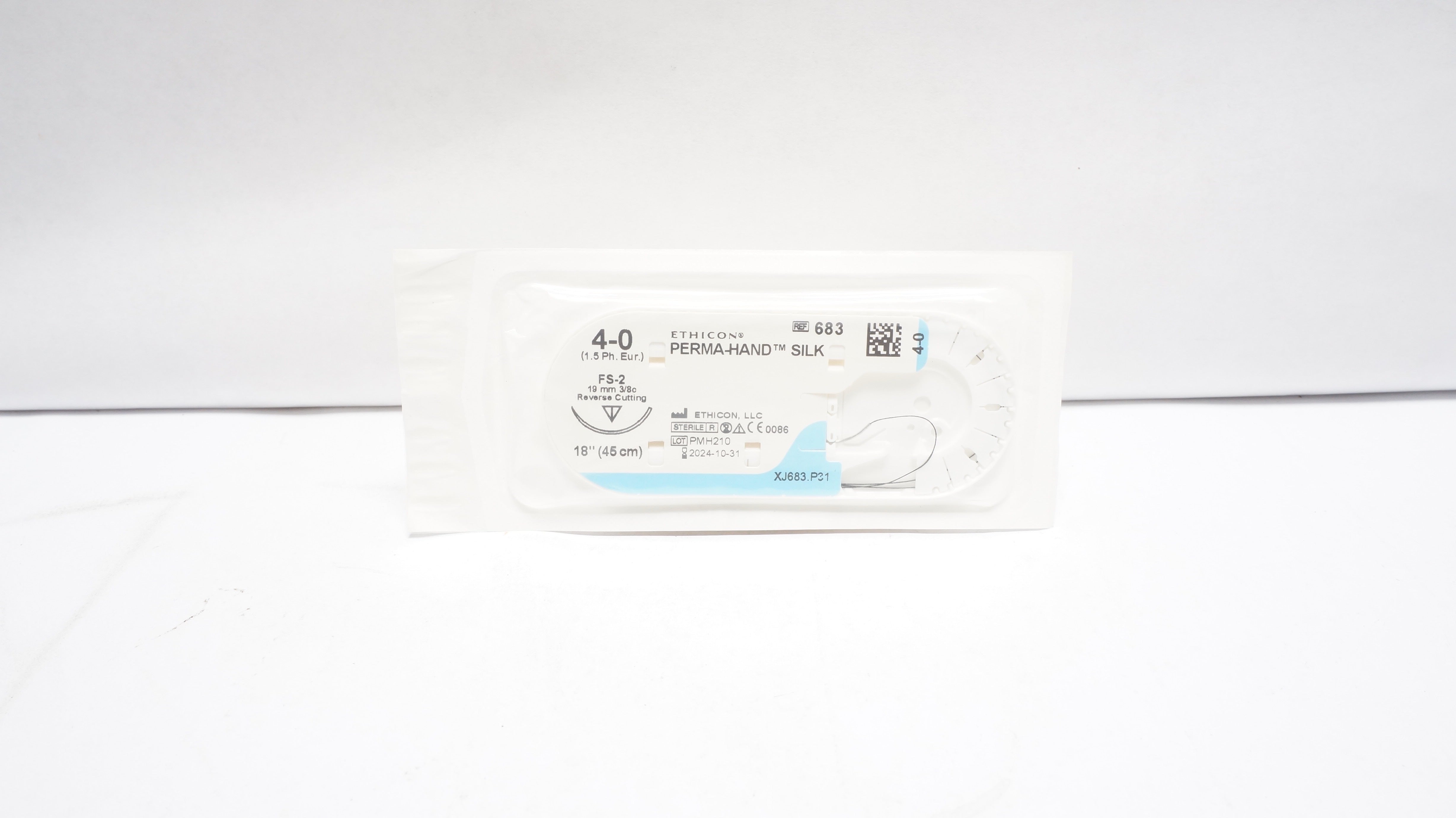- Ethicon 683 4-0 Perma-Hand Silk Stre FS-2 19mm 3/8c Reverse Cutting, 18inch (x)