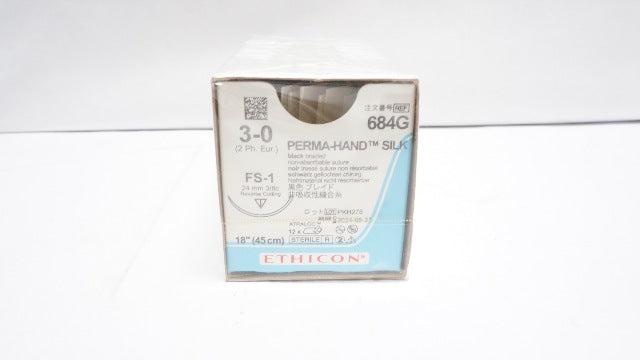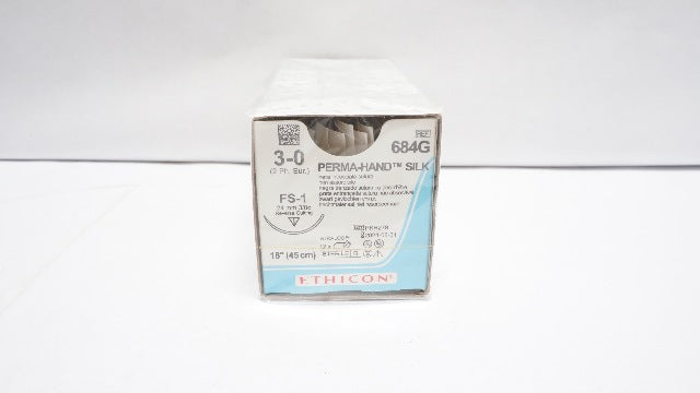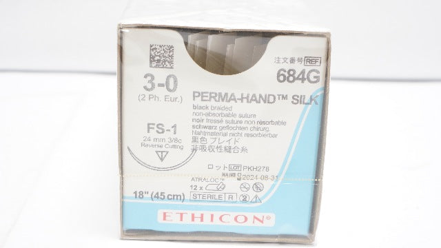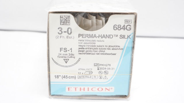 - Ethicon 684G 3-0 Perma-Hand Silk FS-1 24mm 3/8c Reverse Cutting 18in(x)-Box of 12