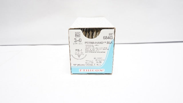 - Ethicon 684G 3-0 Perma-Hand Silk FS-1 24mm 3/8c Reverse Cutting 18in(x)-Box of 10