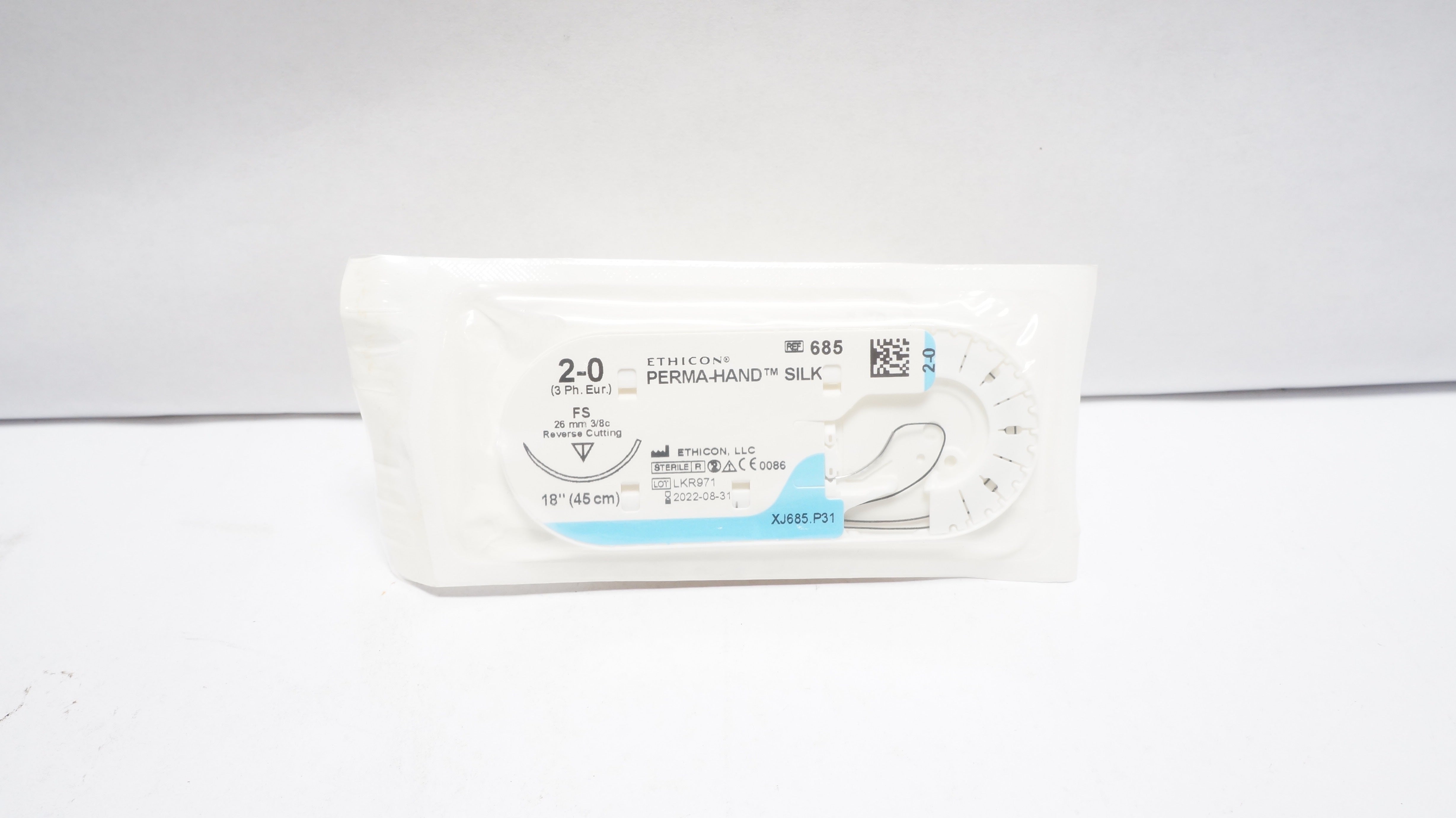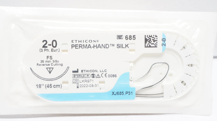 - Ethicon 685 2-0 Perma-Hand Silk Stre FS, 26mm 3/8c Reverse Cutting, 18inch (x)